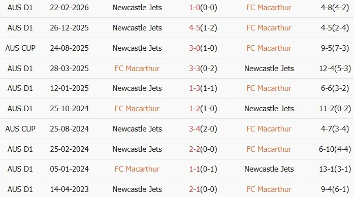 Lịch sử đối đầu Macarthur vs Newcastle Jets