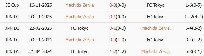 Thống kê phong độ, lịch sử đối đầu của Machida Zelvia vs Tokyo