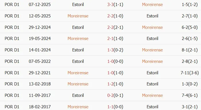 Thống kê phong độ, lịch sử đối đầu của Moreirense vs Estoril Praia