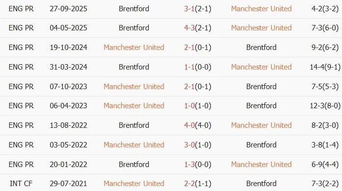 Thống kê phong độ, lịch sử đối đầu của MU vs Brentford