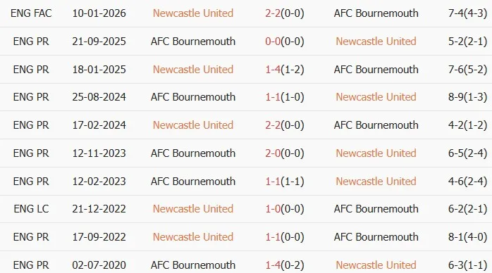 Thống kê phong độ, lịch sử đối đầu của Newcastle vs Bournemouth