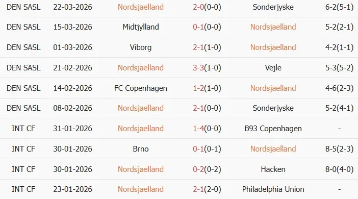 Thống kê phong độ 10 trận đấu gần nhất Nordsjaelland