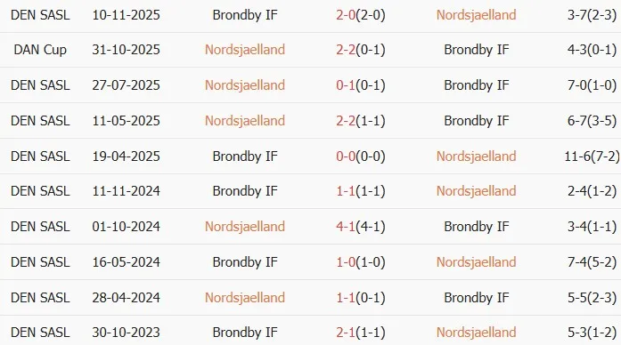 Lịch sử đối đầu Nordsjaelland vs Brondby