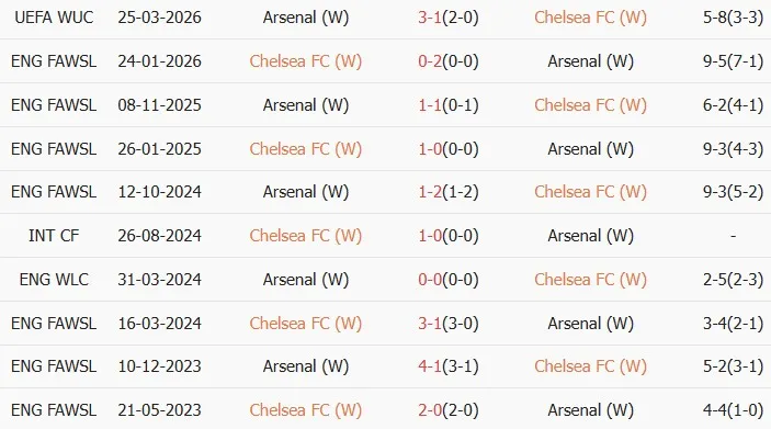 Lịch sử đối đầu Nữ Chelsea vs Nữ Arsenal