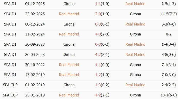 Thống kê phong độ, lịch sử đối đầu của Real Madrid vs Girona