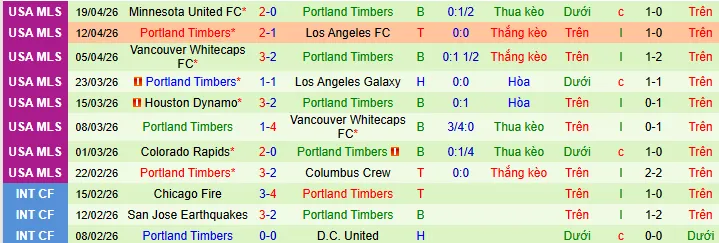 + Portland Timbers thắng 3 thua 6 hòa 1 trong 10 trận gần nhất ở MLS.