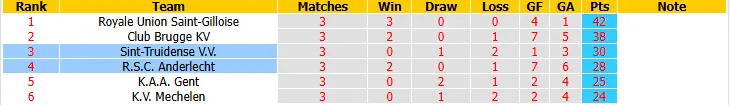 2 trận đối đầu gần đây giữa Sint-Truidense và Anderlecht đã chứng kiến ít nhất 3 bàn thắng được ghi mỗi trận. Ngoài ra, 4 trận sân nhà gần nhất của Sint-Truidense và 7 trong 8 trận đấu mới đây của Anderlecht cũng có tối thiểu 3 bàn/trận.