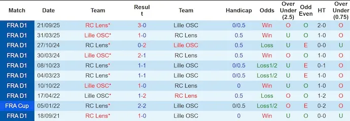 Lịch sử đối đầu Lille vs Lens