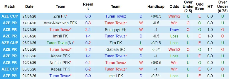 – Thống kê kết quả 10 trận gần nhất của Turan Tovuz