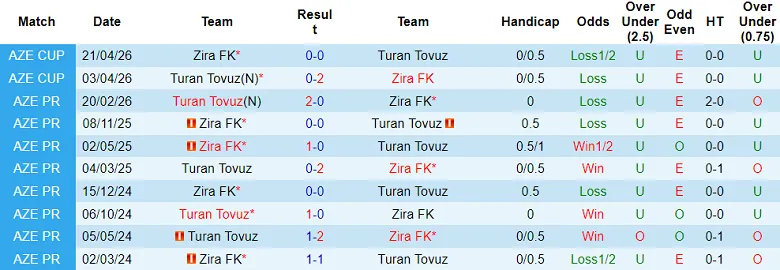 Sự khác biệt về kết quả trong 5 trận gần đây đã giúp Turan Tovuz gia tăng khoảng cách với Zira lên 10 điểm. Cụ thể, Turan Tovuz đã bất bại trong cả 5 trận và giành được 11/15 điểm tối đa, trong khi Zira chỉ thu về 6 điểm với 1 chiến thắng, 3 trận hòa và 1 trận thua.