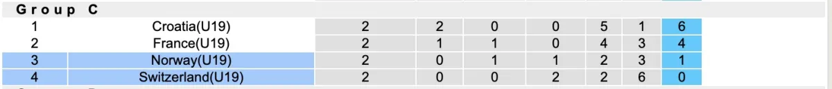 Thống kê phong độ, lịch sử đối đầu của U19 Thụy Sĩ với U19 Na Uy