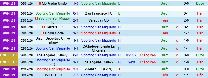 Thống kê phong độ, lịch sử đối đầu của Sporting San Miguelito vs UMECIT