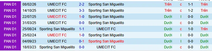Lịch sử đối đầu Sporting San Miguelito vs UMECIT.