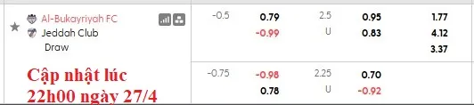 Al Bukayriyah được đánh giá cao hơn một chút ở trận đấu này với mức chấp kèo châu Á 1/2. Họ có thành tích tốt với 2 thắng, 2 hòa và chỉ 1 thất bại trong 5 trận vừa qua, trong khi Jeddah lại thua kèo đến 3/5 trận gần nhất tại giải hạng nhất.