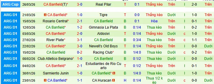 + Banfield thua 7 hòa 2 thắng 5 trong 14 trận vừa qua theo kèo châu Á.