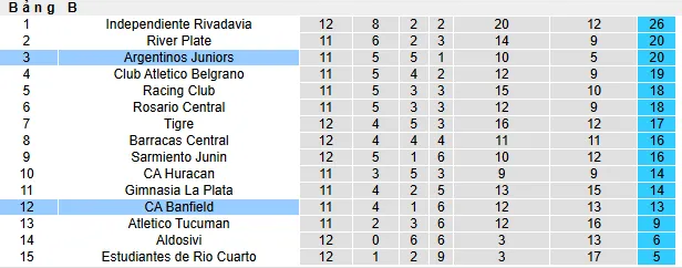 Ngược lại, Banfield bước vào trận đấu này với phong độ không ổn định. Họ mới có 4 chiến thắng, 1 trận hòa và 6 trận thua trong 11 vòng đấu mùa này. Trung bình họ ghi được 1,1 bàn và để thủng lưới 1,2 bàn mỗi trận, cho thấy một đội bóng có thể tạo ra cơ hội nhưng thường để lại những khoảng trống ở hàng phòng ngự.