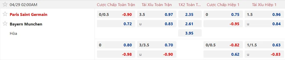 Soi kèo tài xỉu PSG vs Bayern Munich
