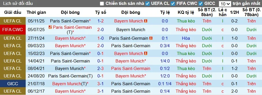 Hai đội đều đang có thành tích châu Á tương đối ấn tượng thời gian gần đây, khi cùng thắng kèo 5/6 trận trên mọi đấu trường. Lịch sử đối đầu chứng kiến sự lấn lướt của Bayern Munich, đội đã thắng kèo châu Á 5 và hòa 1 ở 6 trận gặp nhau gần nhất giữa đôi bên. Kịch bản này nhiều khả nâng sẽ tái diễn ở màn so tài đêm nay.