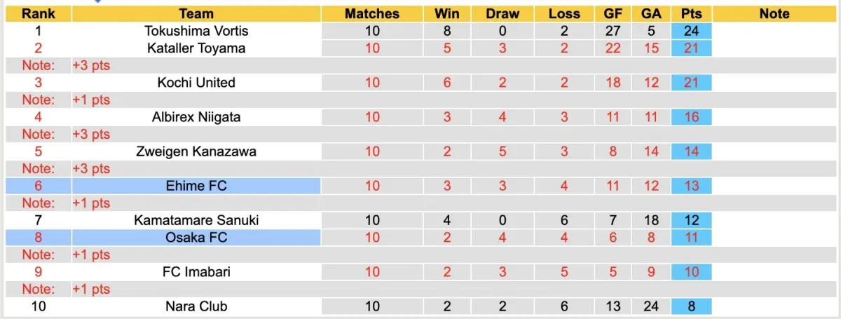 -Thống kê phong độ 10 trận đấu gần nhất của Ehime