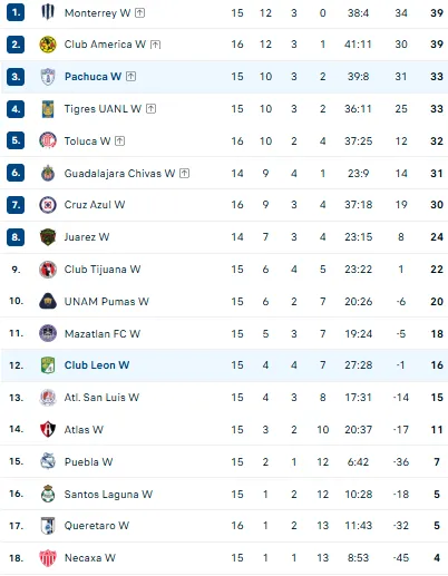 Đội nữ Leon đang có 16 điểm, xếp thứ 12 và cách Top 8 đến 8 điểm nên không còn cơ hội giành vé vào vòng play-off. Họ chỉ còn 2 trận đấu cuối mang tính thủ tục.