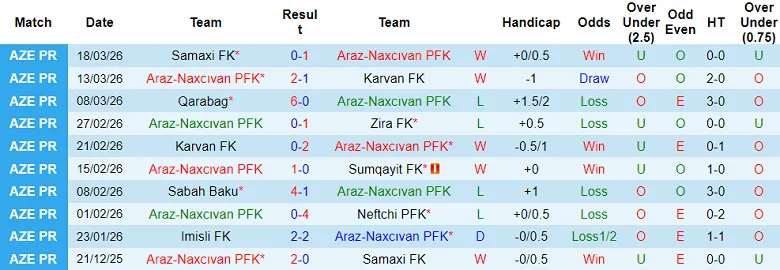 – Thống kê kết quả 10 trận gần nhất của Araz-Naxcivan