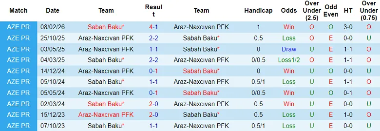Araz-Naxcivan thua theo Handicap cả 2 lần gần nhất được đội khách chấp thuộc giải VĐQG Azerbaijan. Sabah thắng kèo lẫn tỷ số tới 7/8 trận sân khách gần đây thuộc khuôn khổ Azerbaijan Premier League, trong đó có 3 chiến thắng khi chấp từ 0,75 trái trở lên. So với Araz-Naxcivan thì Sabah hứa hẹn mang tới nhiều niềm tin hơn đáng kể.