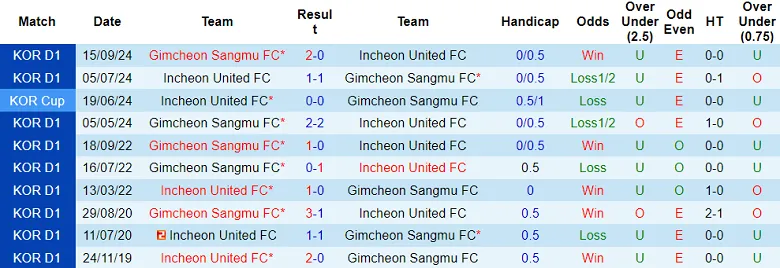 Gimcheon Sangmu đã hòa cả 5 trận kể từ khi giải đấu bắt đầu. Do đó, họ có khả năng sẽ chia điểm khi đối đầu với Incheon United vào Chủ nhật (5/4).