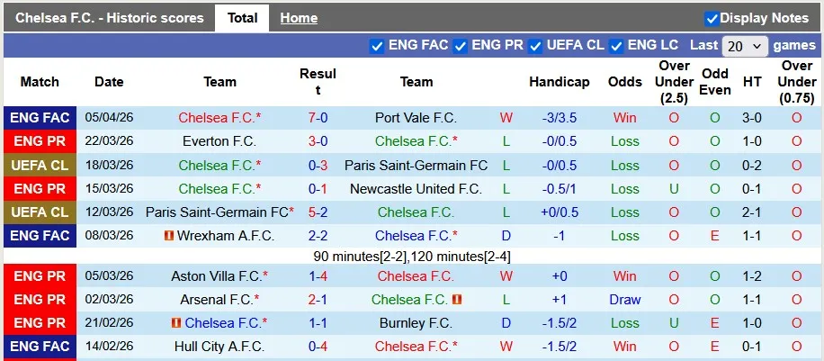 Thống kê phong độ 10 trận đấu gần nhất của Chelsea cho thấy sự ổn định của đội.