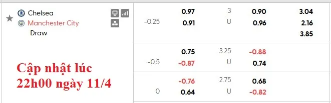 Chelsea chỉ thắng kèo đúng 1/6 trận gần nhất tại giải Ngoại hạng Anh, trong khi thua kèo 4 trận. Ngược lại, Man City có 3 trận thắng kèo trong cùng chu kỳ. Họ cũng là đội được đánh giá cao hơn với mức chấp 1/4 và đáng tin với kèo này.