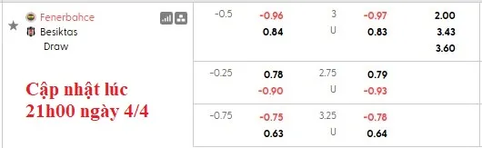 Nhận định soi kèo Fenerbahce vs Besiktas, 0h00 ngày 6/4 – Giải VĐQG Thổ Nhĩ Kỳ. Phân tích tỷ lệ kèo, dự đoán kết quả Fenerbahce đấu vs Besiktas chuẩn xác từ chuyên gia BongdaNET.