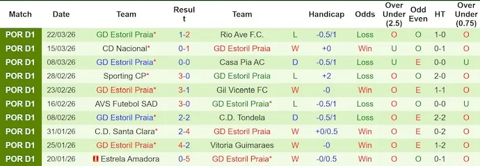 Estoril cũng thể hiện phong độ tương tự khi thắng 5, hòa 2 và thua 3 trong 10 trận gần nhất. Những chiến thắng đậm như 5-0 trước Estrela hay 4-2 trước Vitoria Guimaraes cho thấy sức tấn công khá tốt, nhưng các thất bại 0-3 trước Sporting CP hay 0-3 trước AFS cũng bộc lộ sự thiếu ổn định.