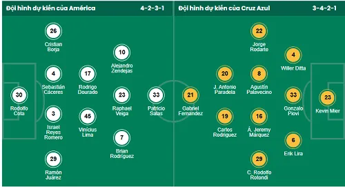 Ngược lại, Cruz Azul đang ở vị trí thuận lợi hơn, đứng thứ hai trên BXH với 27 điểm, cách ngôi đầu 4 điểm. Mùa giải của họ được đánh dấu bằng 8 chiến thắng, 3 trận hòa và chỉ 2 trận thua, với hiệu số bàn thắng bại ấn tượng là 24 bàn thắng và 14 bàn thua. Tuy nhiên, phong độ gần đây của họ không mấy khả quan, khi đội bóng vẫn chưa giành được chiến thắng nào trong 5 trận gần nhất, bao gồm 3 trận hòa và 2 trận thua. Thất bại gần đây nhất là trận thua 0-3 trước Los Angeles FC ở Cúp C1, cho thấy những điểm yếu trong phòng ngự cần được khắc phục nếu họ muốn tiếp tục cạnh tranh.