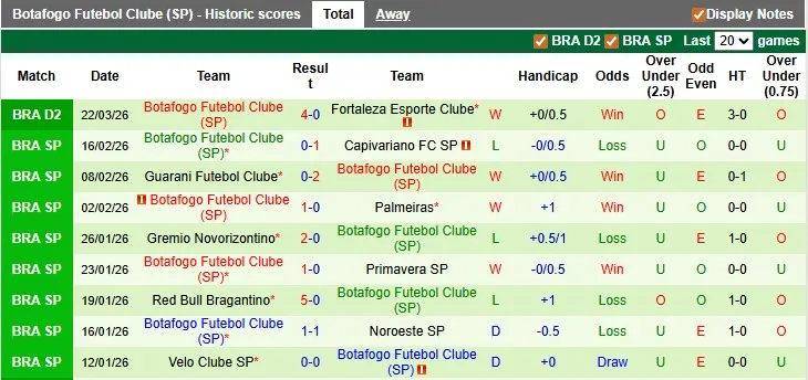 Thống kê phong độ 10 trận đấu gần nhất của Botafogo