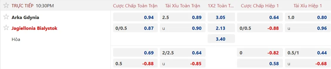 Các cầu thủ Arka Gdynia bước vào trận đấu này với thành tích thắng kèo châu Á 4 trong 5 trận đấu gần đây. Ở chiều ngược lại, Jagiellonia lại thể hiện bộ mặt rất đáng thất vọng, chỉ thắng kèo 1/7 trận gần nhất, trong đó có tới 4 trận thua và 2 trận hòa.