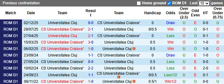 5/6 trận đối đầu gần đây trên sân của Universitatea Cluj khép lại với tối đa 2 pha lập công. 5 trận liên tiếp vừa qua của Universitatea Craiova cũng kết thúc mà không thể vượt mốc 2 bàn thắng.