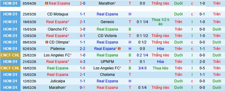 + Real Espana thắng 9 hòa 6 thua 5 trong 20 trận gần đây trên các mặt trận.