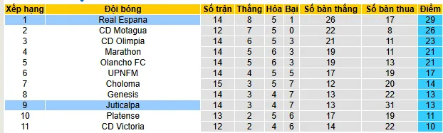 + 9 trận gần nhất Real Espana tiếp đón Juticalpa trên sân nhà cũng có 3 bàn thắng trở xuống.