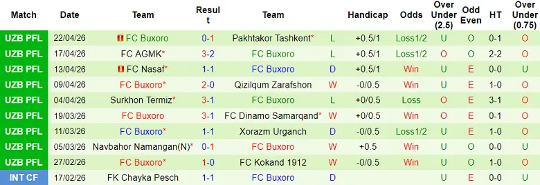 – Thống kê kết quả 10 trận gần nhất của Buxoro.