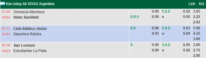 Nhận định bóng đá Gimnasia Mendoza vs Velez Sarsfield, 01h00 ngày 4/4/2026 tại giải VĐQG Argentina. Dự đoán, phân tích tỷ lệ kèo châu Âu, châu Á trận Gimnasia Mendoza đấu vs Velez Sarsfield từ các chuyên gia hàng đầu.
