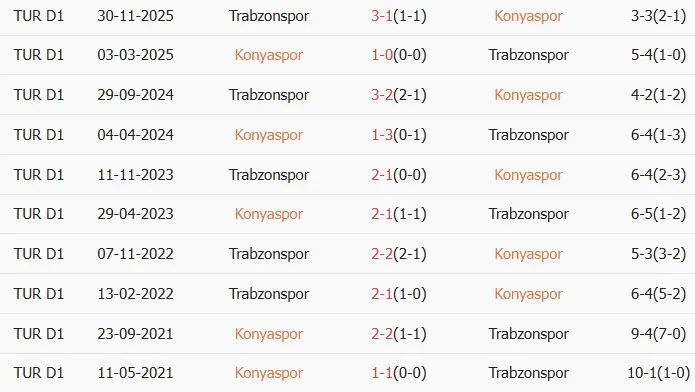 Thống kê phong độ, lịch sử đối đầu của Konyaspor vs Trabzonspor