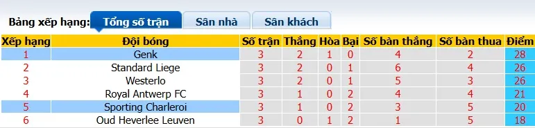 Thống kê phong độ, lịch sử đối đầu của Genk vs Sporting Charleroi