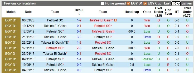 Petrojet cũng là đội giành được các kết quả khả quan hơn khi chạm trán với Tala'ea El Gaish trong những lần chạm trán gần đây. Đội khách có 4 chiến thắng, hòa 4 và chỉ thua 2/10 trận gần nhất. Họ hoàn toàn có thể tiếp tục thắng trận này.