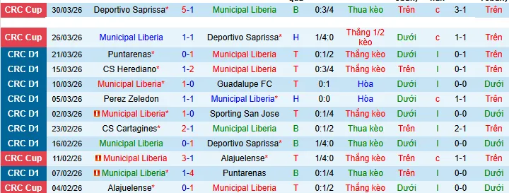 + Municipal Liberia thắng 4 hòa 3 nhưng cũng thua 4 trong 11 trận gần nhất trên sân nhà theo kèo châu Á.