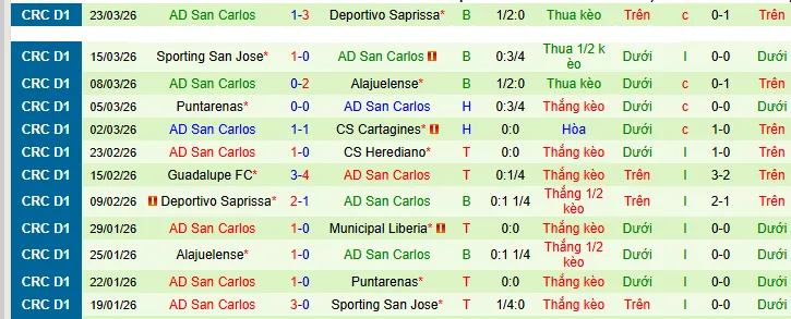 + San Carlos thắng 8 hòa 1 chỉ thua 3 trong 12 trận vừa qua theo kèo châu Á.