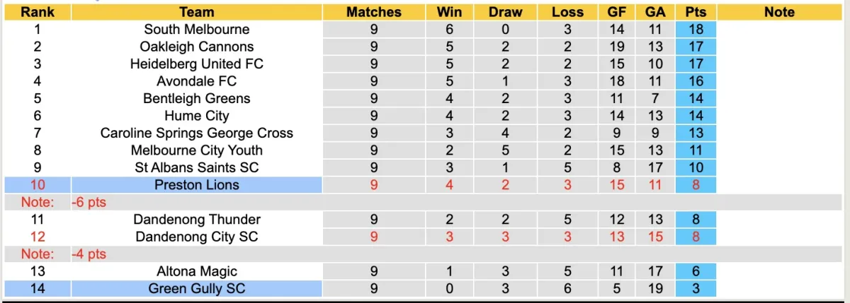 Trong mùa giải trước, Preston Lions đã tạo nên bất ngờ khi giành quyền thăng hạng và tham gia VIC Premier League, và họ đã chứng minh bản thân là một đội bóng đáng gờm khi kết thúc mùa giải tại vị trí thứ 5 trên bảng xếp hạng.