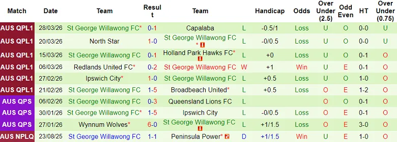 – Thống kê kết quả 10 trận gần nhất của St George Willawong