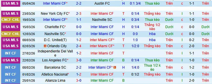 + Inter Miami thắng 11 hòa 2 thua 5 trong 18 trận gần đây theo kèo châu Á.