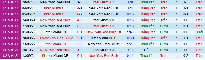 + Inter Miami đã vượt qua mức chấp -1.25 trong 3 trận liên tiếp gặp Red Bulls.