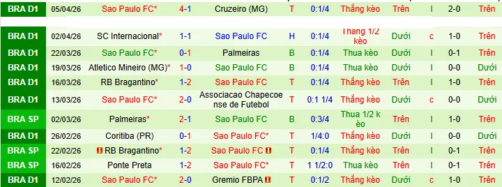 + Sao Paulo thắng 10 thua 5 trong 15 trận vừa qua theo kèo châu Á.