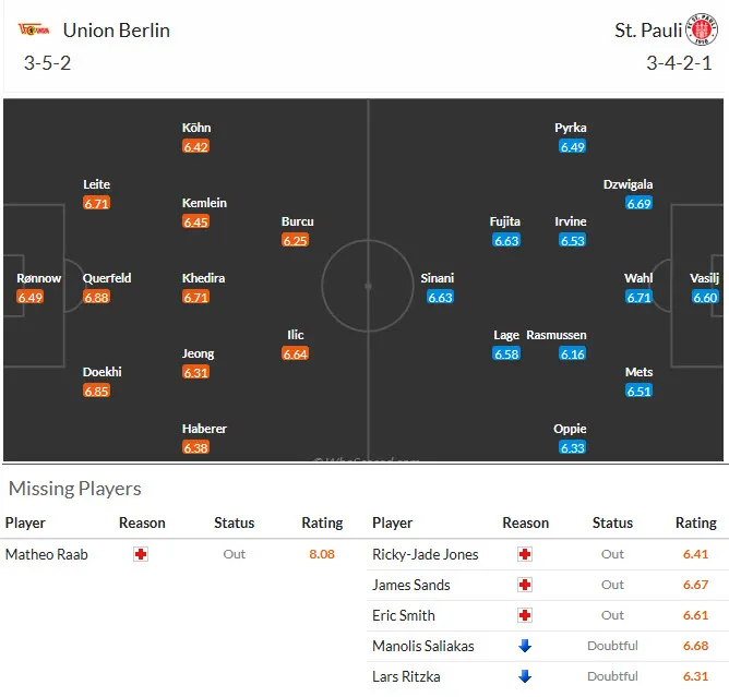 Thông tin lực lượng và đội hình dự kiến Union Berlin vs St. Pauli